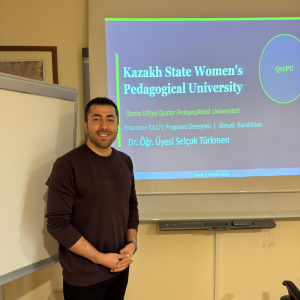 Eğitim Fakültesi Araştırma ve Akademik Deneyim Paylaşım Toplantıları'na kaldığımız yerden devam ediyoruz. Mart 2026 toplantısında Okul Öncesi Öğretmenliği Bölümünden Selçuk Türkmen Hocamızı dinledik. Kendisi, Erasmus/Exchange programı ders verme hareketliliği çerçevesinde Kazak Devlet Kızlar Pedagoji Üniversitesi'nde gerçekleştirdiği etkinlikleri ve yaptığı görüşmeleri bizlerle paylaştı. Akabinde kapsayıcı eğitim uygulamaları bağlamında Kazakistan ve Türkiye deneyimleri arasında karşılaştırmalı bir tartışma yürütme fırsatı bulduk. Kendisine bilgilendirici sunumu için teşekkür ederiz.