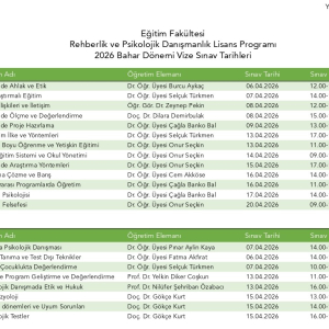 Rehberlik ve Psikolojik Danışmanlık Programı 2026 Bahar Dönemi VİZE Takvimi